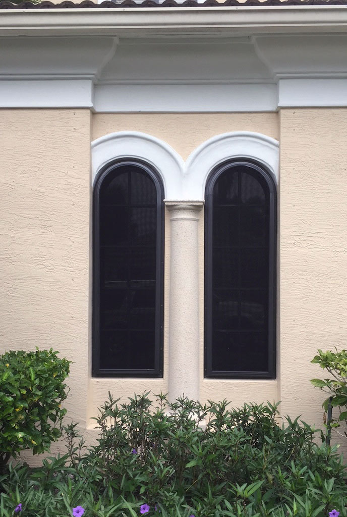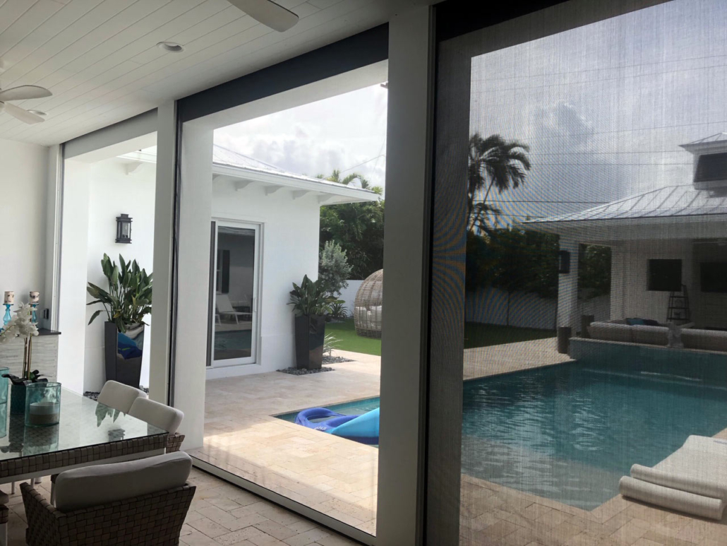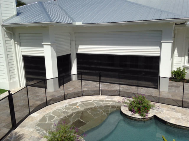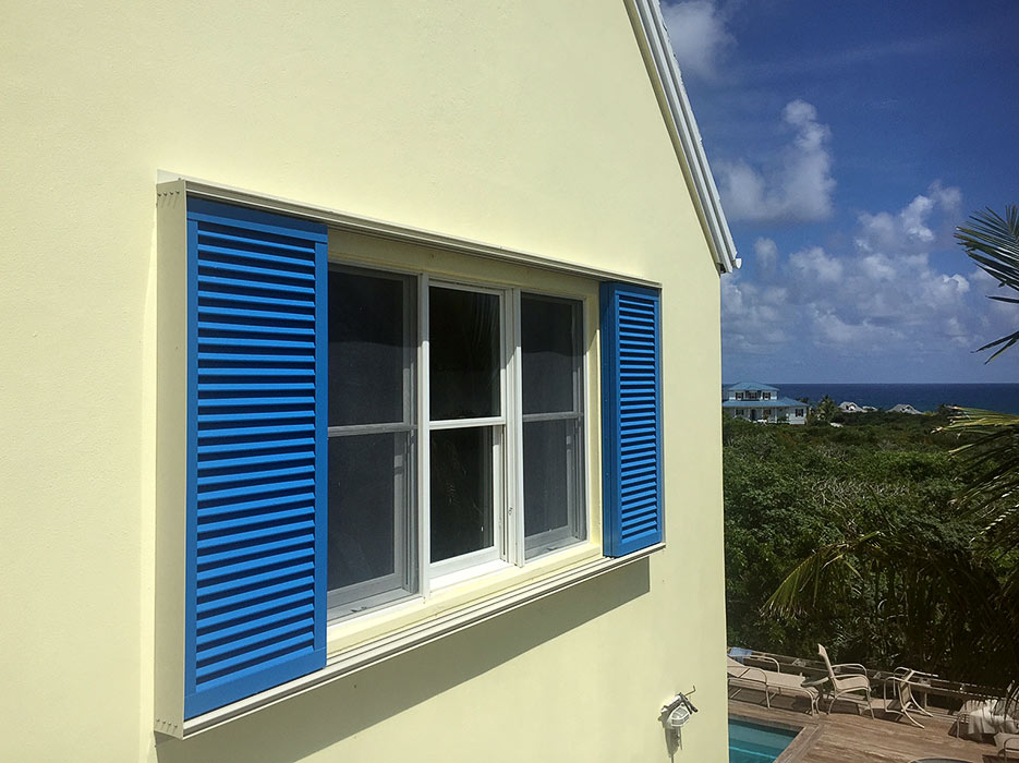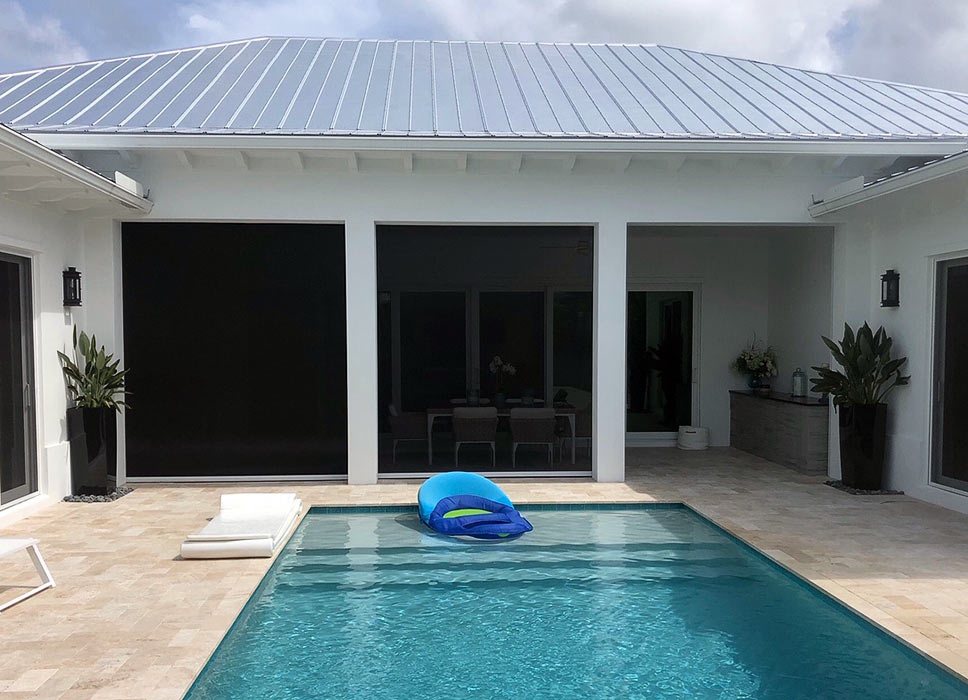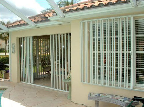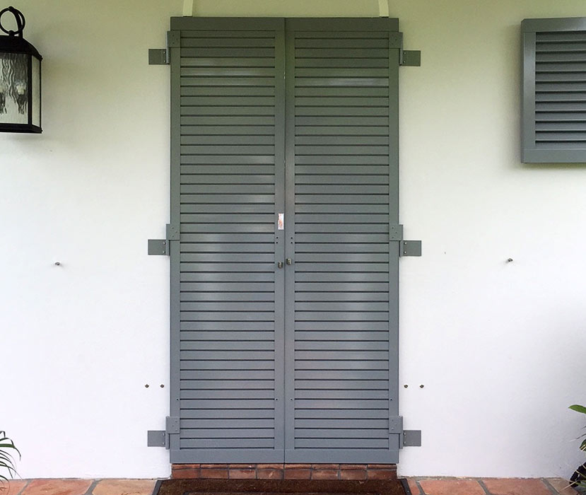These are a relatively new alternative to one of the oldest protection devices, plywood sheets. Lightweight and strong, the panels are made from polycarbonate sheets cut to size for each opening, typically windows and doors. Flat panels are attractive because their architectural impact is also limited to the fastening system, which are usually small stainless steel anchors, which are easily capped to help minimize their appearance.